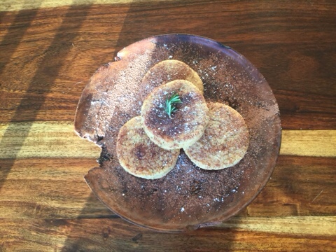 - Decorate with coco powder, icing sugar and extra rosemary. (Optional.)